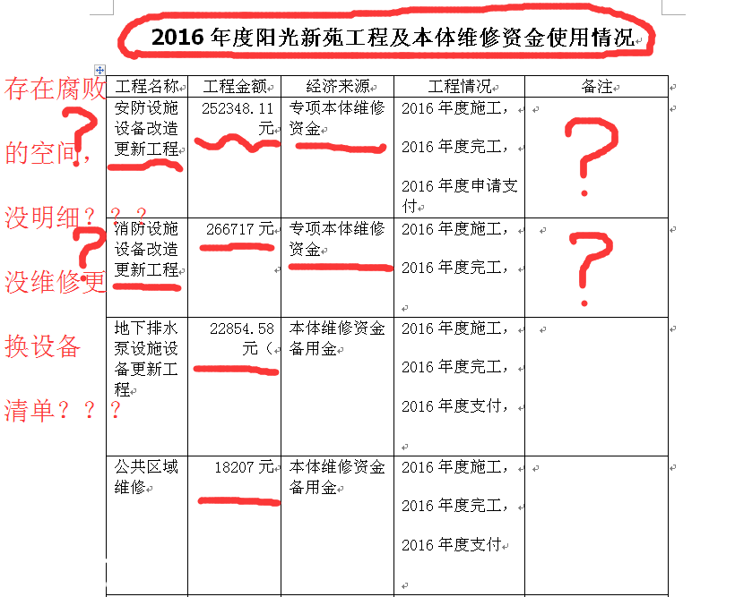 2016年今年3月中旬,“中航阳光新苑”小区管理处——物业经理 郑中福 搞 的小区消防改造、监控改造、停车场改造工程(注:前任物业经理李显星于2014年年9月也同样搞了一次这样的维修共用掉了30多万元)。这次新上任的物业经理又搞一次,且一次比一次钱多狠…,一个施工队5、6个民工模样的人突然进场对小区消防改造的管道进行施工刷红色的油漆。搞了一个星期。其它什么事情也没做,业主们到管理处问了消防改造维修了什么项目?有什么设备需要更换的?当时物业经理---郑中福 听到了,从他的办公室出来粗爆的回了一句,你们自己去现场看就行了。然后登起他的那双老鼠眼,象个凶恶的老虎一样。“当时我们业主都不知道是怎么回事”。随后有业主多次向管理处反映此事,希望能拿出施工方案、维修方案、施工队伍的资质文件、招投标结果、预算资金等。公示一下出来。让广大业主知情。。。