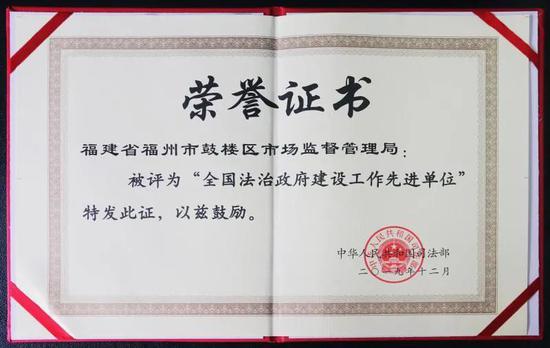 喜报!鼓楼区市场监管局荣获“全国法治政府建设工作先进单位”!