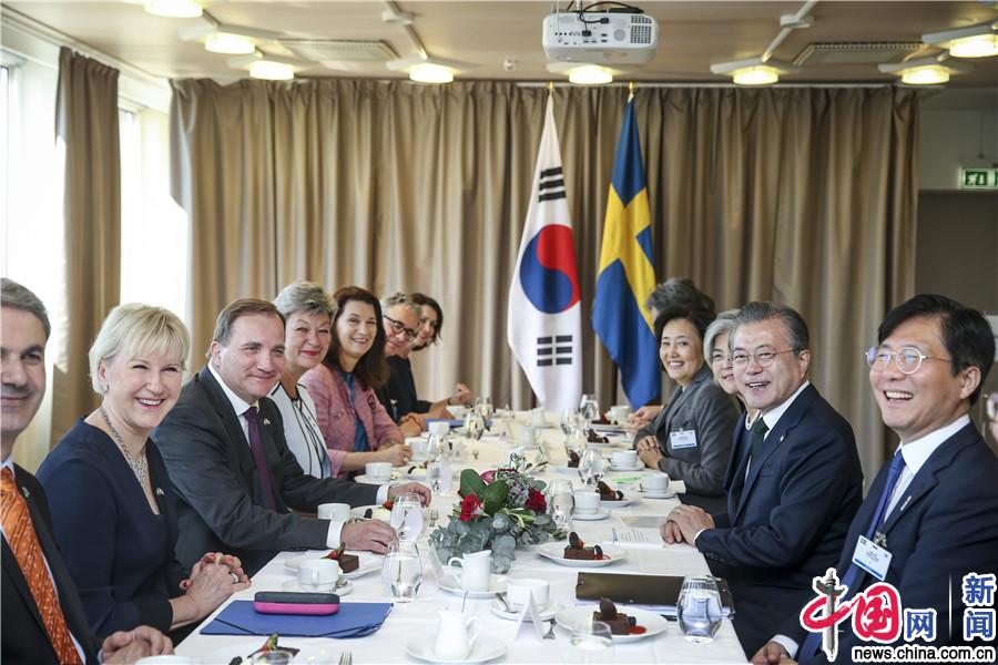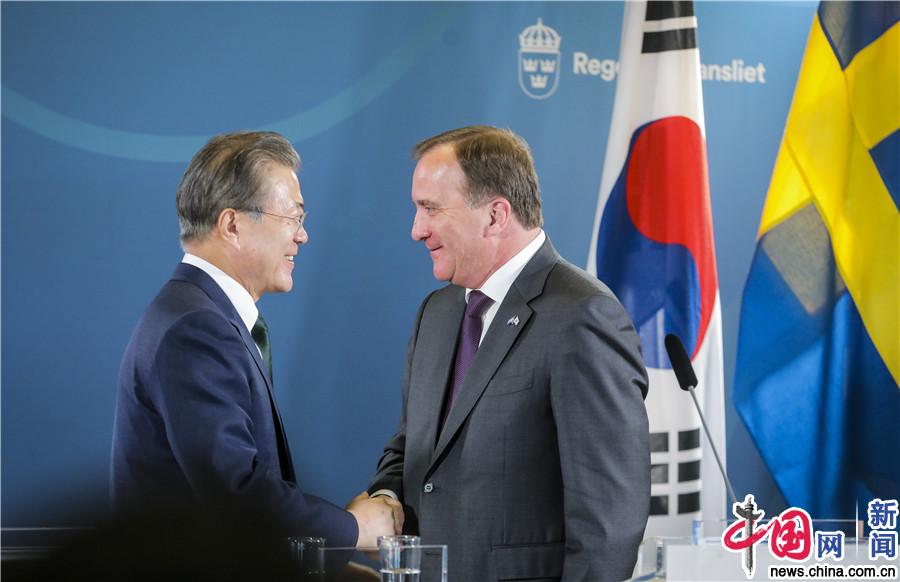 韩国总统文在寅访问瑞典并召开新闻发布会