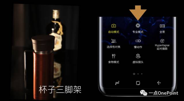 不过,手机也需要调到可以控制快门和感光度的模式:这里以三星最新的 S8 为例,拍照界面从左往右一划,就能选择专业模式。之后把感光度设到最低(ISO 50),快门速度设到最慢(10秒)。按下快门,就可以开始光绘了。
