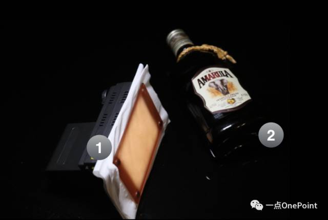 注意灯是朝向酒瓶,而不是朝向手机,