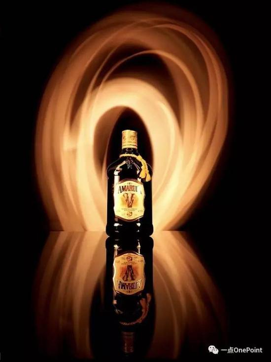 2 你看着好像标注的是酒瓶,其实我想说的是酒瓶下方的黑色东西,那是一块亚克力塑料布,也就是拍摄静物中常用的所谓 “倒影板” 。顾名思义,它的作用是制造酒瓶和光线轨迹的倒影,让画面光效更震撼。